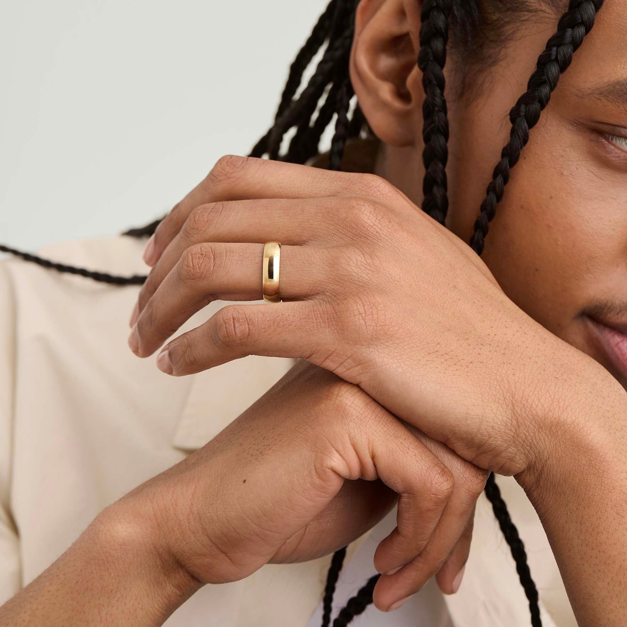 Make a bold statement with Mejuri’s 6mm Curve Band Ring, available in 14k Gold, White Gold, and Platinum. This substantial ring features a refined curve design, offering a modern twist on a classic band. Perfect for wearing solo or pairing with other rings, it’s handcrafted with precision for a sleek and sophisticated look. Discover this versatile piece of jewelry at Mejuri.