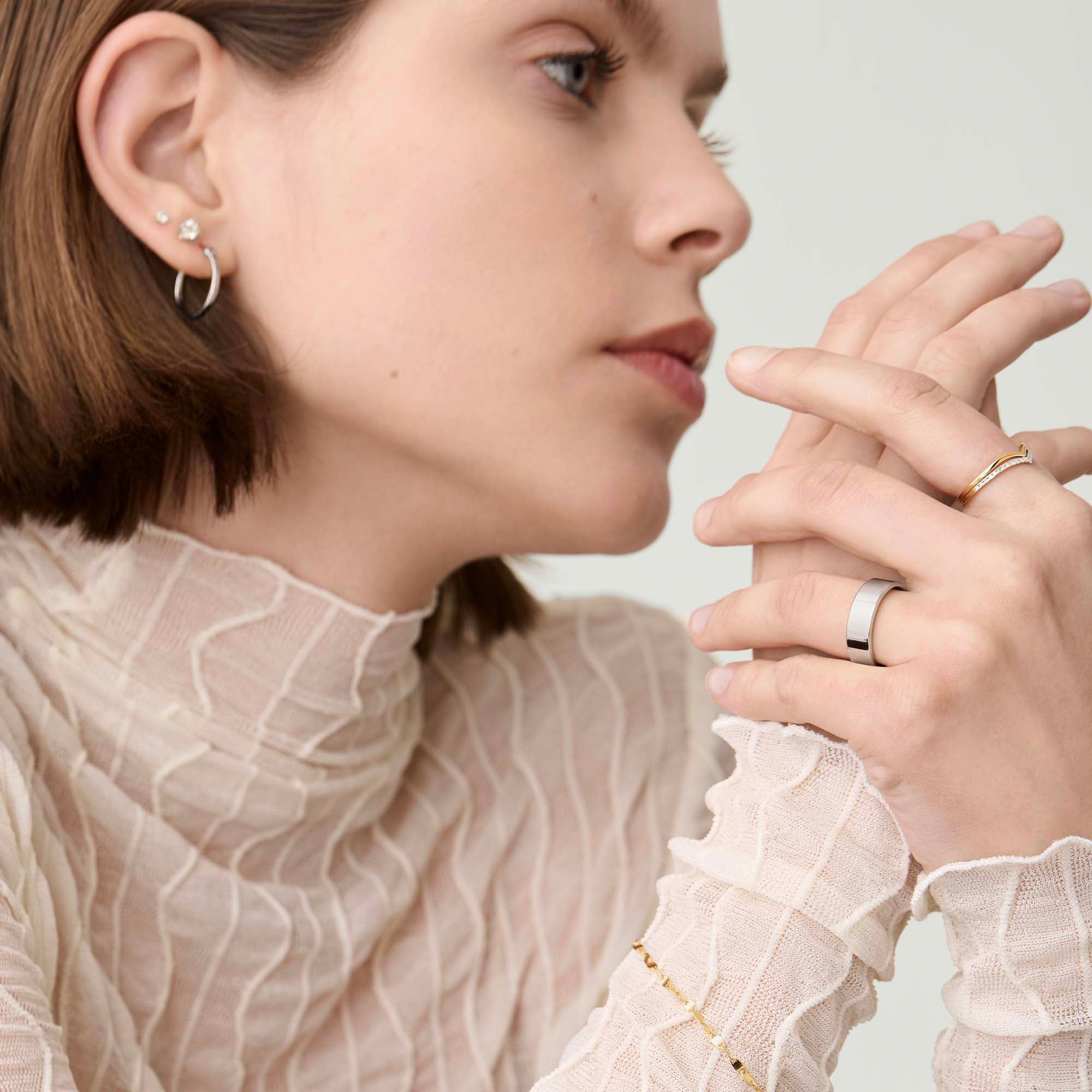 Our 14k gold pieces are made to last and perfect for everyday wear. Each piece is crafted from 94% recycled gold. 14k white gold pieces are finished with rhodium plating, giving them their signature color along with added shine and durability.