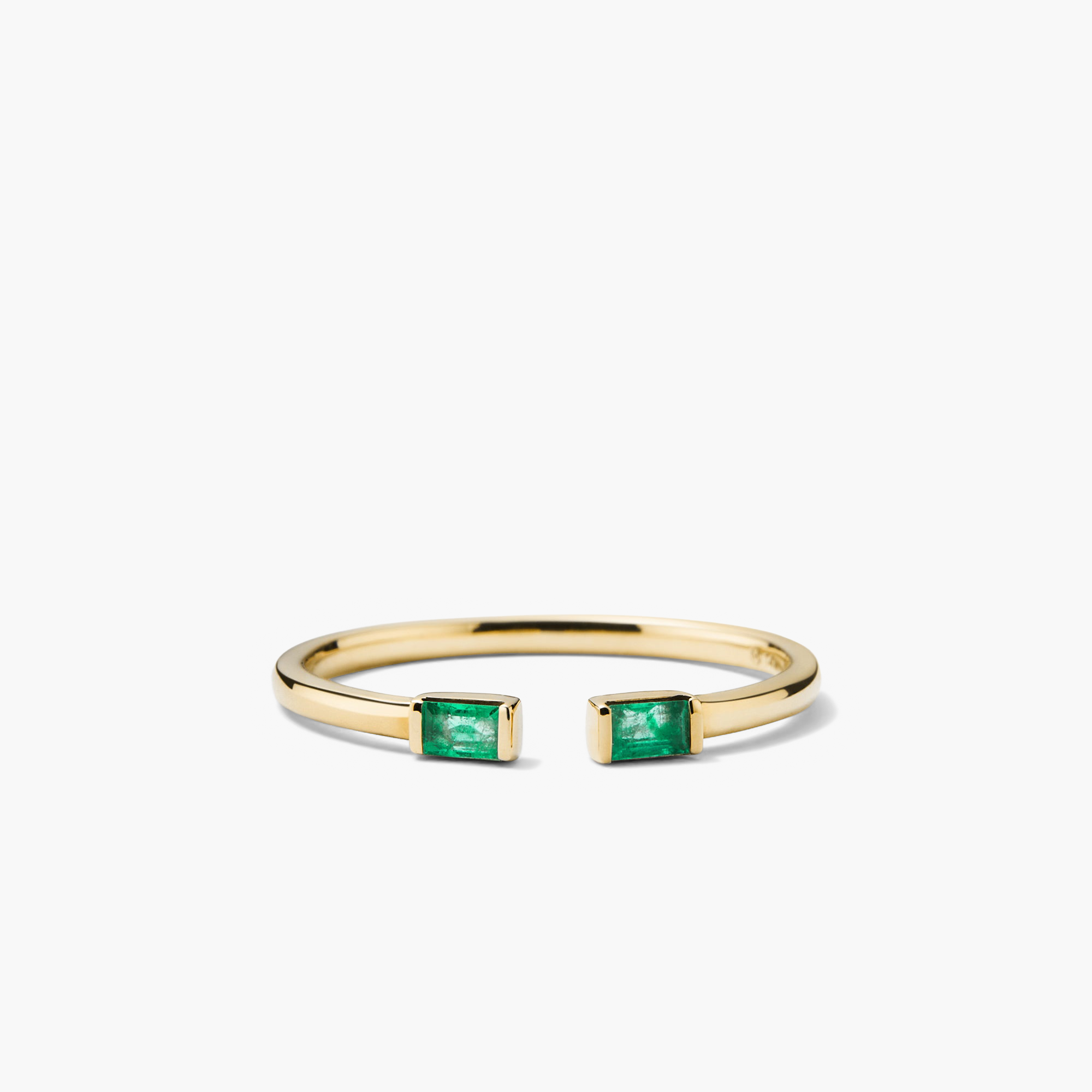 Discover Mejuri’s 14k Gold Emerald Baguette Open Ring. This elegant ring features a tapered baguette emerald, handcrafted for a timeless look. Shop our collection of 14k gold and gemstone emerald jewelry with free shipping.