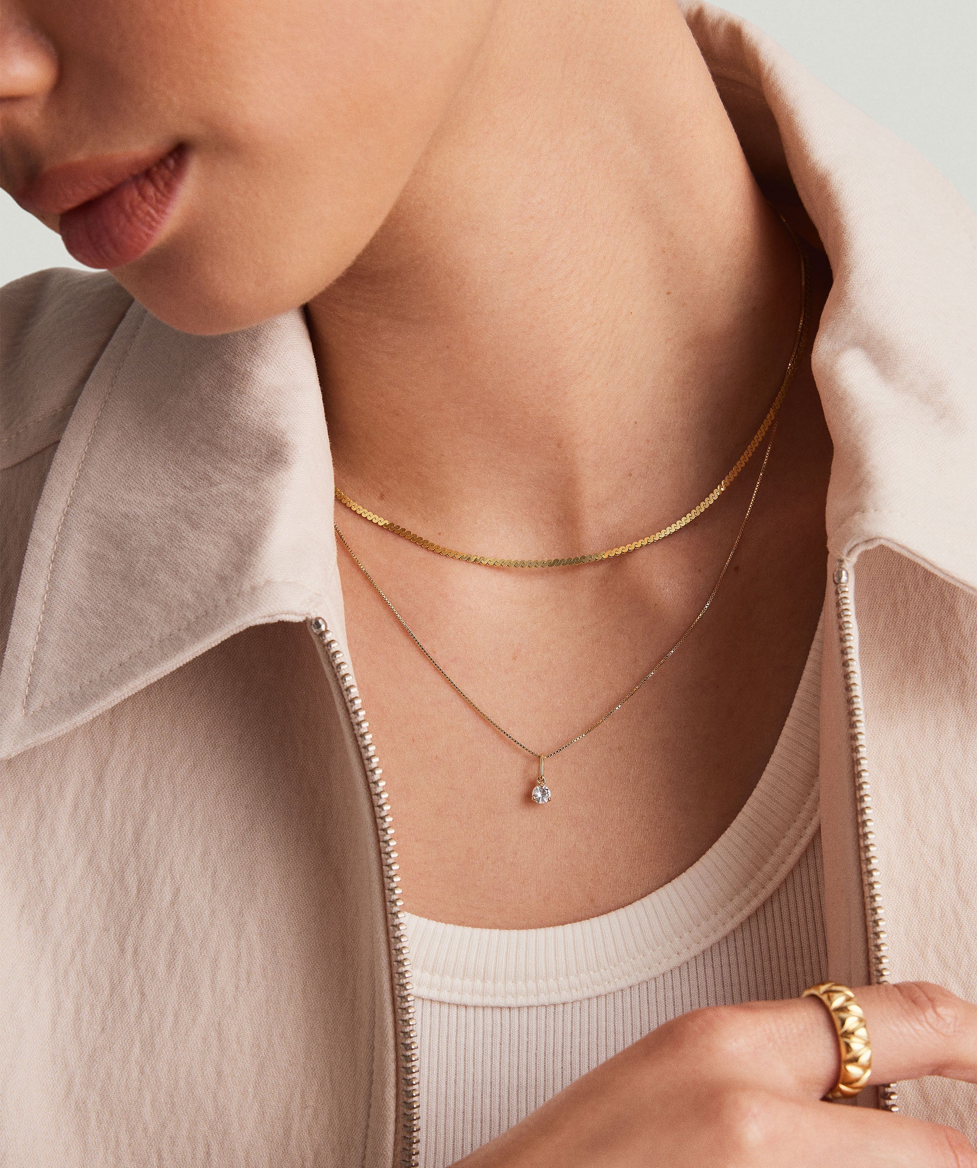 Our 14k gold pieces are made to last and perfect for everyday wear. Each piece is crafted from 94% recycled gold. 14k white gold pieces are finished with rhodium plating, giving them their signature color along with added shine and durability.