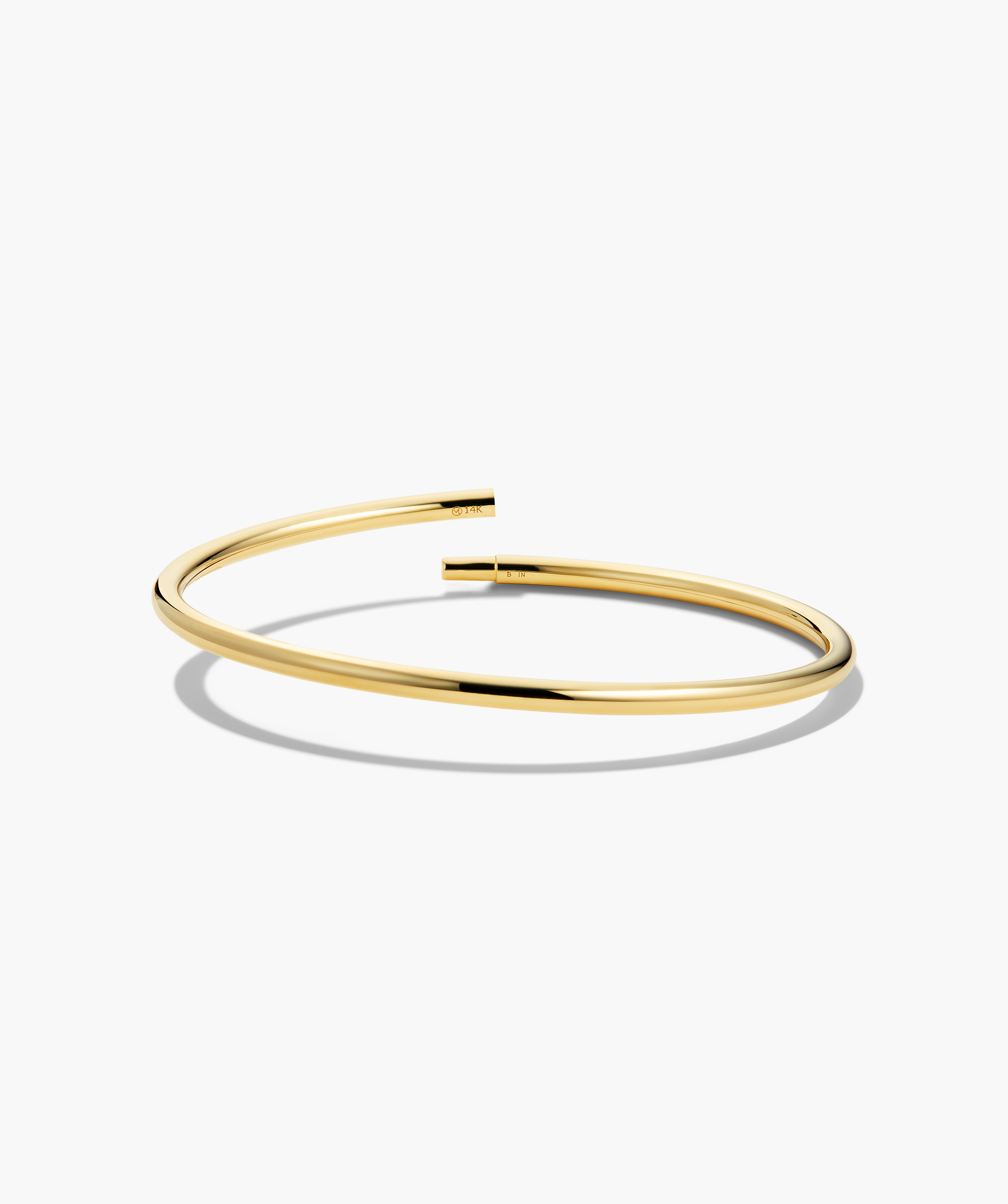 Discover the Bold Flexi Bangle from Mejuri, crafted in hollow 14k gold for a lightweight and flexible design. Perfect for everyday wear, this minimal bangle is easy to slip on and pairs beautifully with the Thin Bangle for a stylish stacked look.