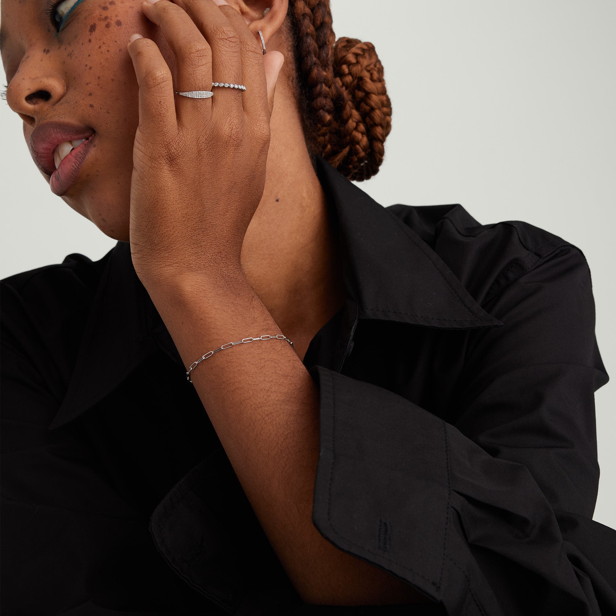 Your boyfriend denim just found its match with this thin gold bracelet for everyday. Shop the dainty bracelet from Mejuri today.