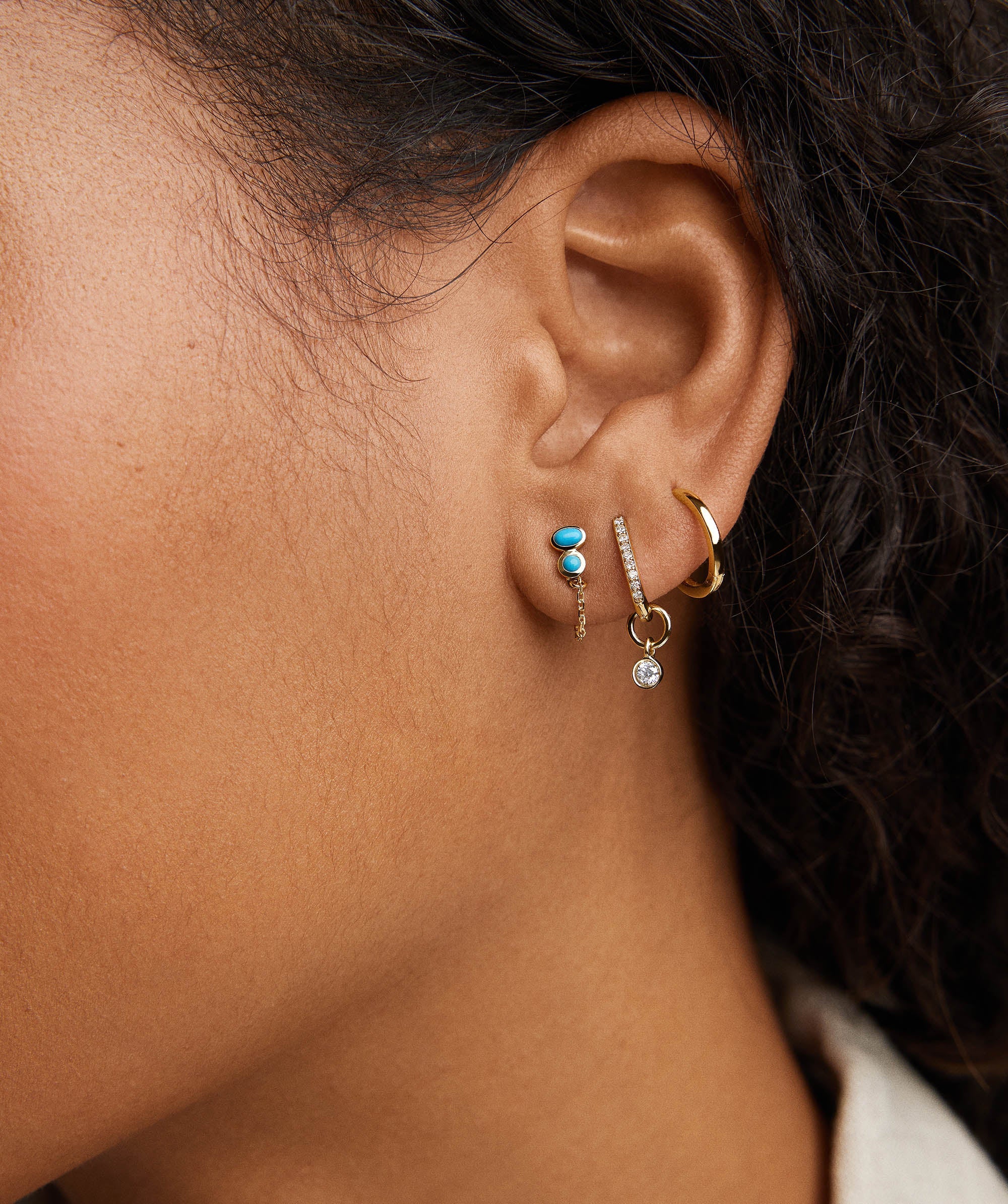 Elevate your look with Mejuri’s 14k Gold Bezel Turquoise Chain Stud Earrings. Handcrafted with turquoise gemstones, these versatile earrings allow you to design your ear stack your way, adding a beachy touch to any outfit.nn