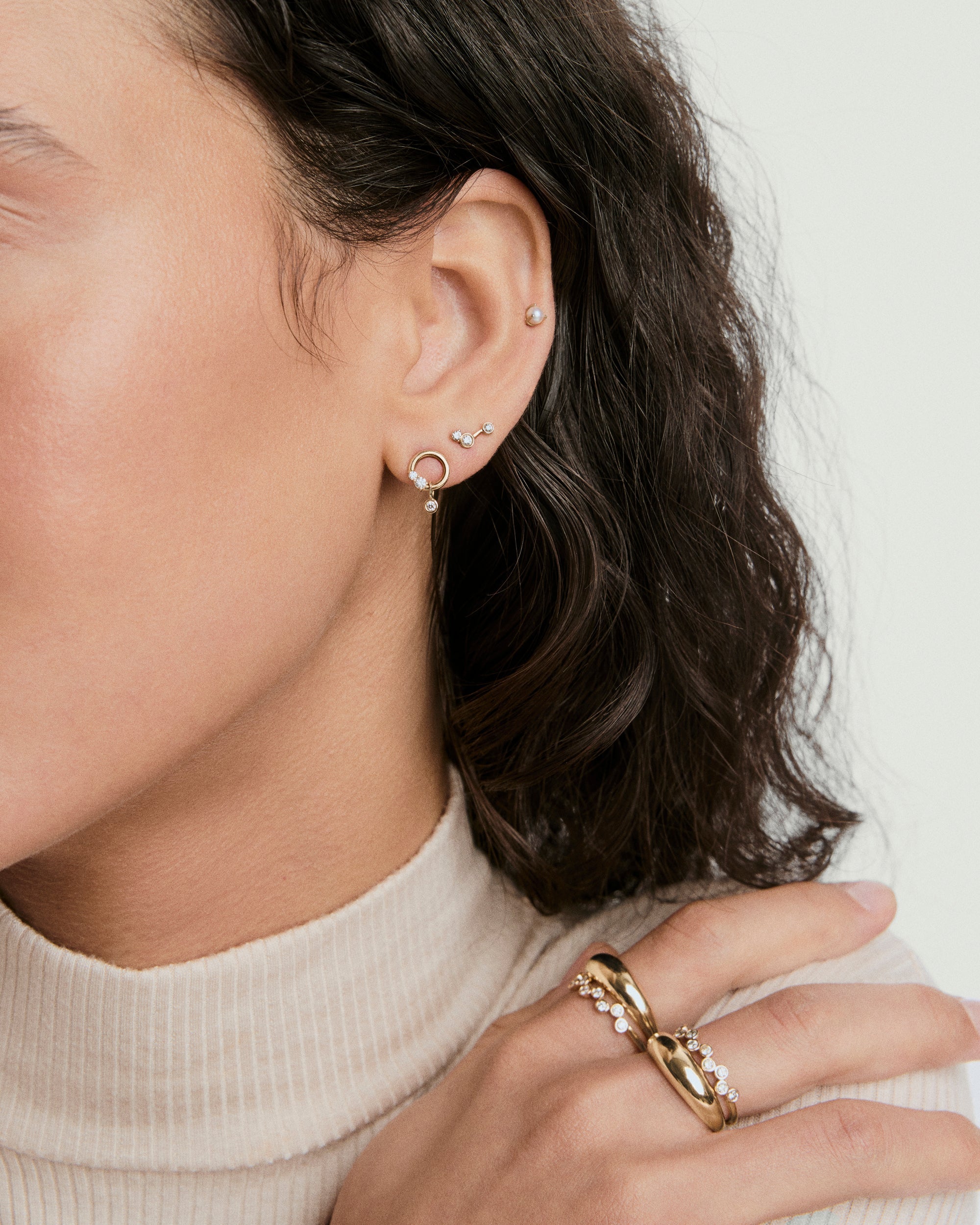 Discover Mejuri’s Celeste Ellipse Stud, featuring prong-set lab-grown diamonds in 14k yellow gold. Celestial-inspired elegance for everyday wear.