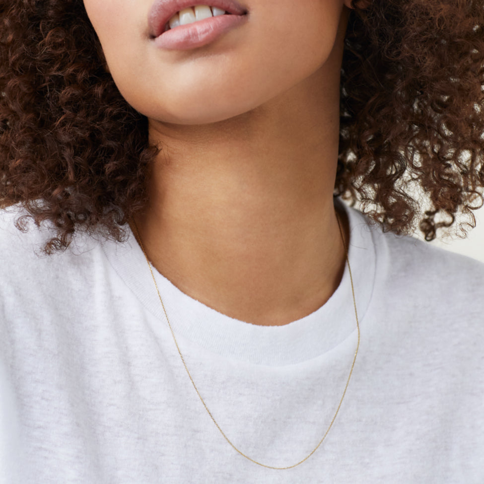 Elevate your style with our gold chain necklace, a sophisticated addition to any outfit. Discover the perfect 14k gold necklace chain from Mejuri.