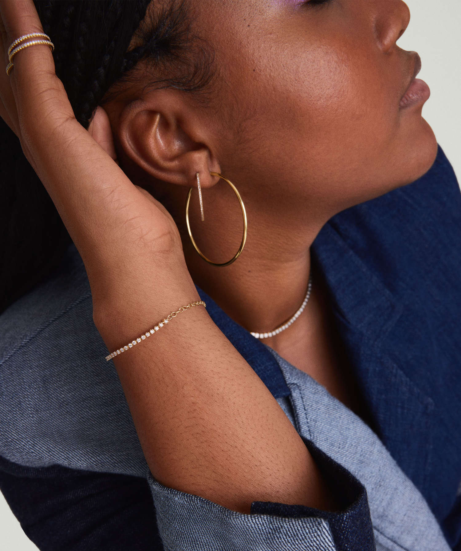 Capture the brilliance of Mejuri’s 14k Gold Diamond Half Tennis Bracelet. This investment piece features multiple diamonds handcrafted in solid gold, creating a timeless sparkle that will induce gasps for decades to come.