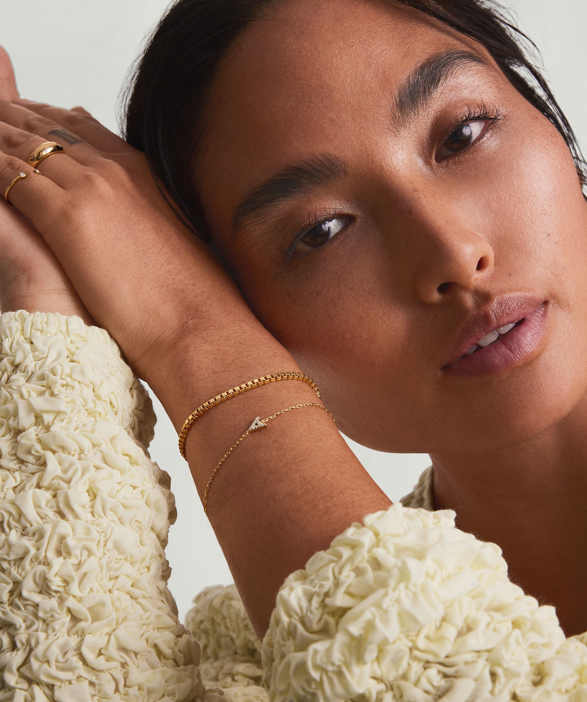 Writing your name in ice just took on a whole new meaning with Mejuri’s 14k Gold Diamond Letter Bracelet. Handcrafted in solid 14k gold, this bracelet features single-cut pavĂ© diamond-set letters, allowing you to personalize your look with a touch of elegance and sparkle. Start on your ABCs and make a statement with this unique piece of jewelry. Discover it at Mejuri.