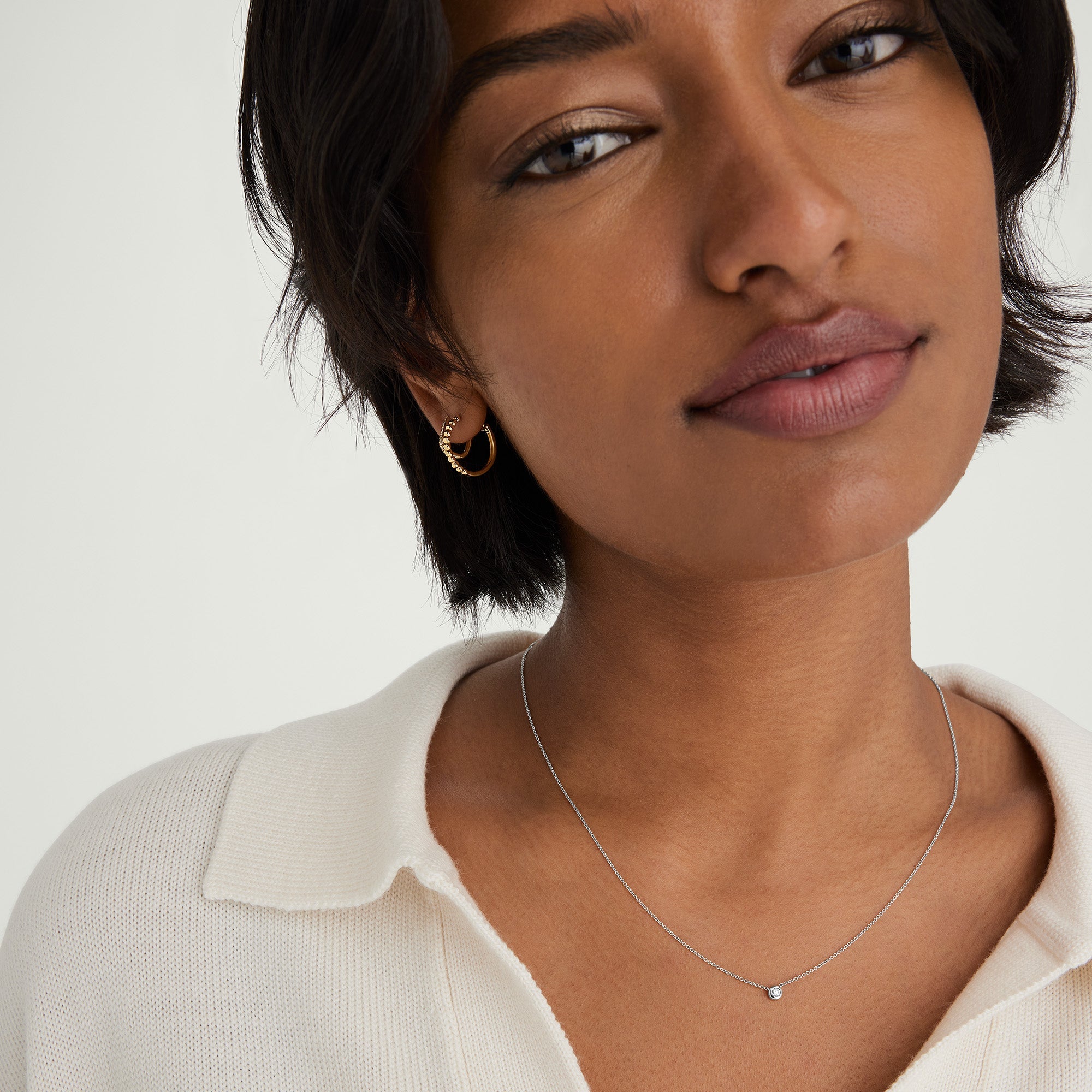 Discover Mejuri’s 14k Yellow Gold Bezel Set Diamond Necklace. This timeless piece features a beautifully set diamond in solid gold, perfect to hold on to forever.