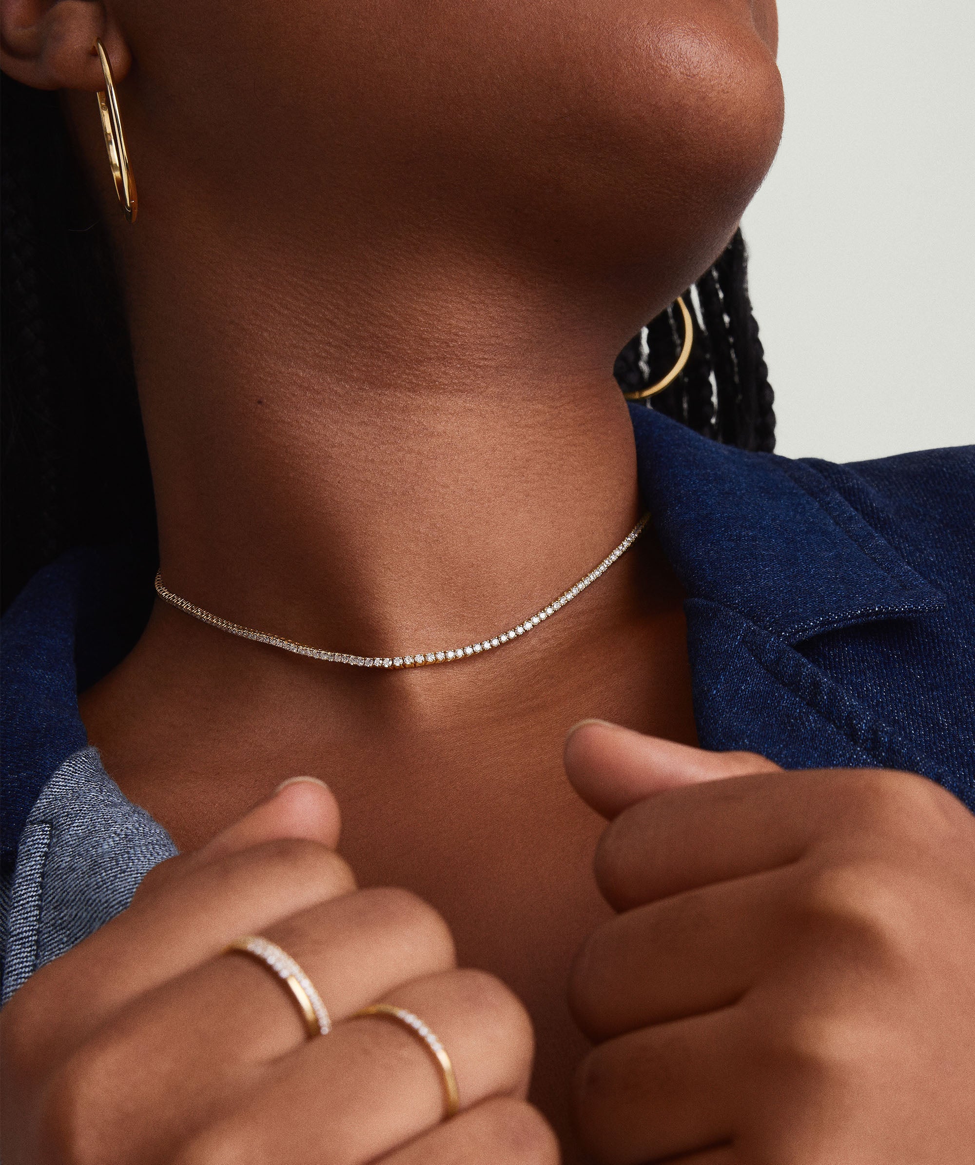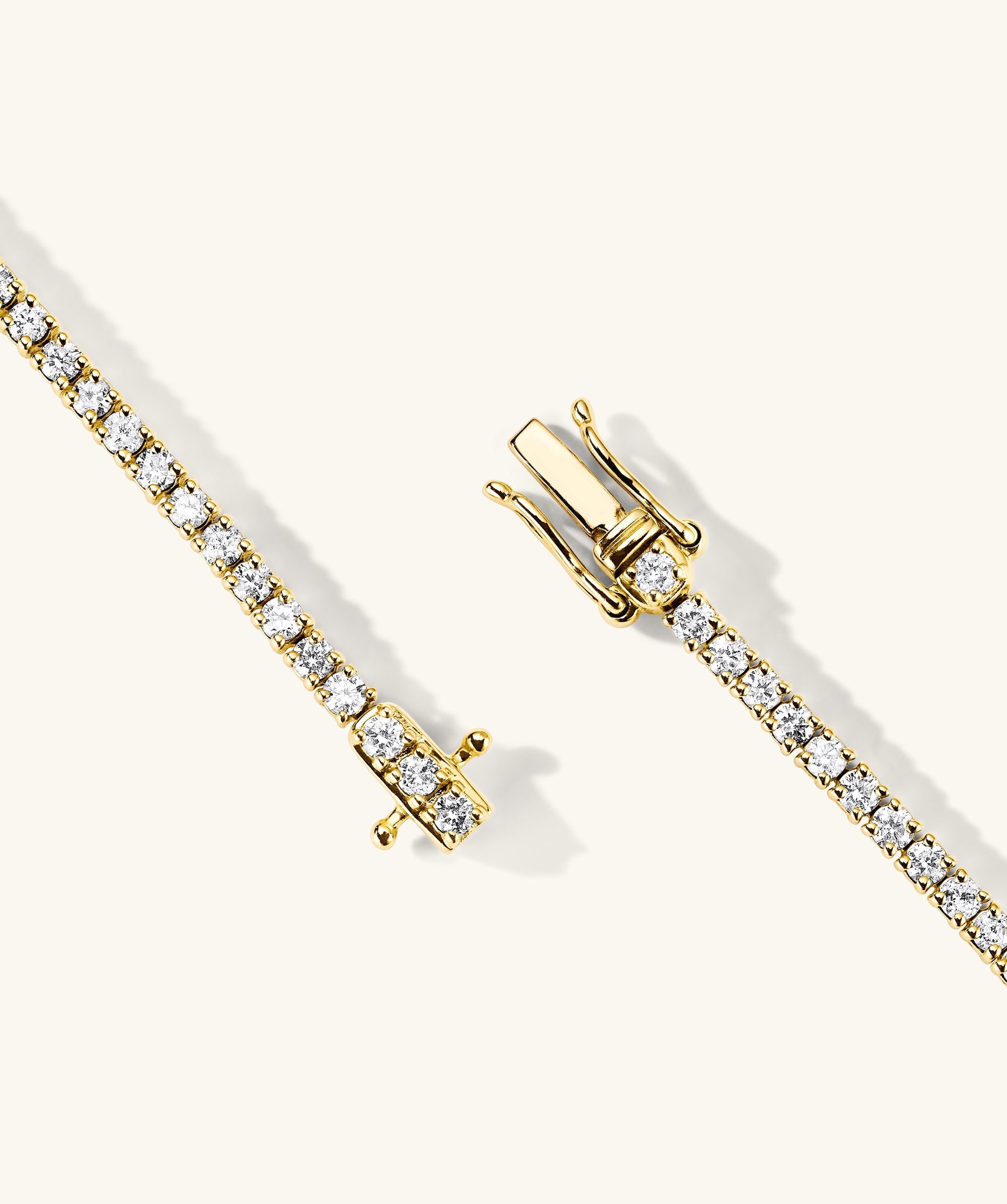 Capture the brilliance of Mejuri’s 14k Gold Diamond Tennis Necklace. This investment piece features responsibly sourced diamonds, handcrafted in solid gold, creating a timeless sparkle that will induce gasps for decades to come. To put on the necklace, place the safety handles in your right hand and the inner tongue in your left, then insert the tongue into the clasp until you hear a