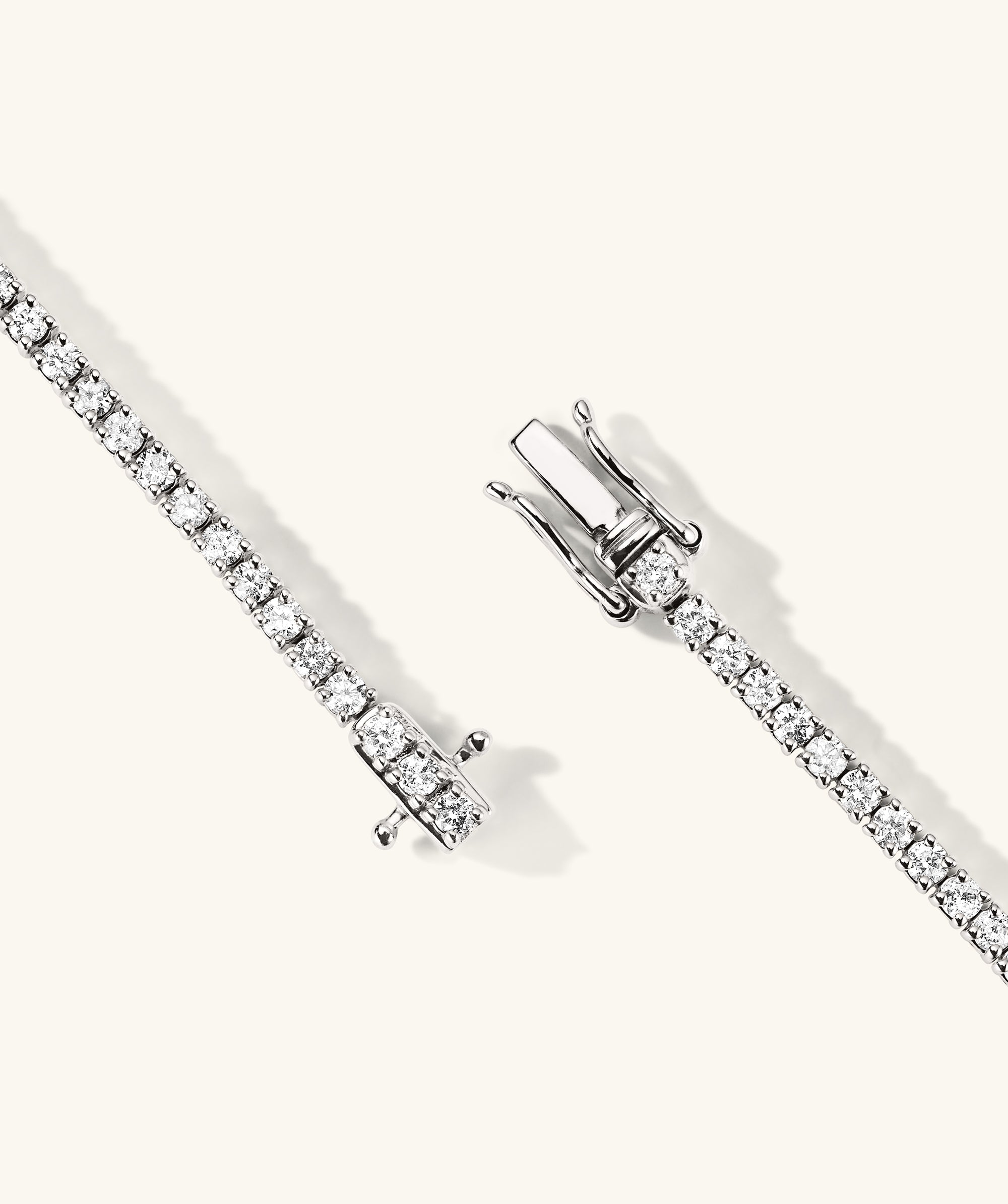 Capture the brilliance of Mejuri’s 14k Gold Diamond Tennis Necklace. This investment piece features responsibly sourced diamonds, handcrafted in solid gold, creating a timeless sparkle that will induce gasps for decades to come. To put on the necklace, place the safety handles in your right hand and the inner tongue in your left, then insert the tongue into the clasp until you hear a