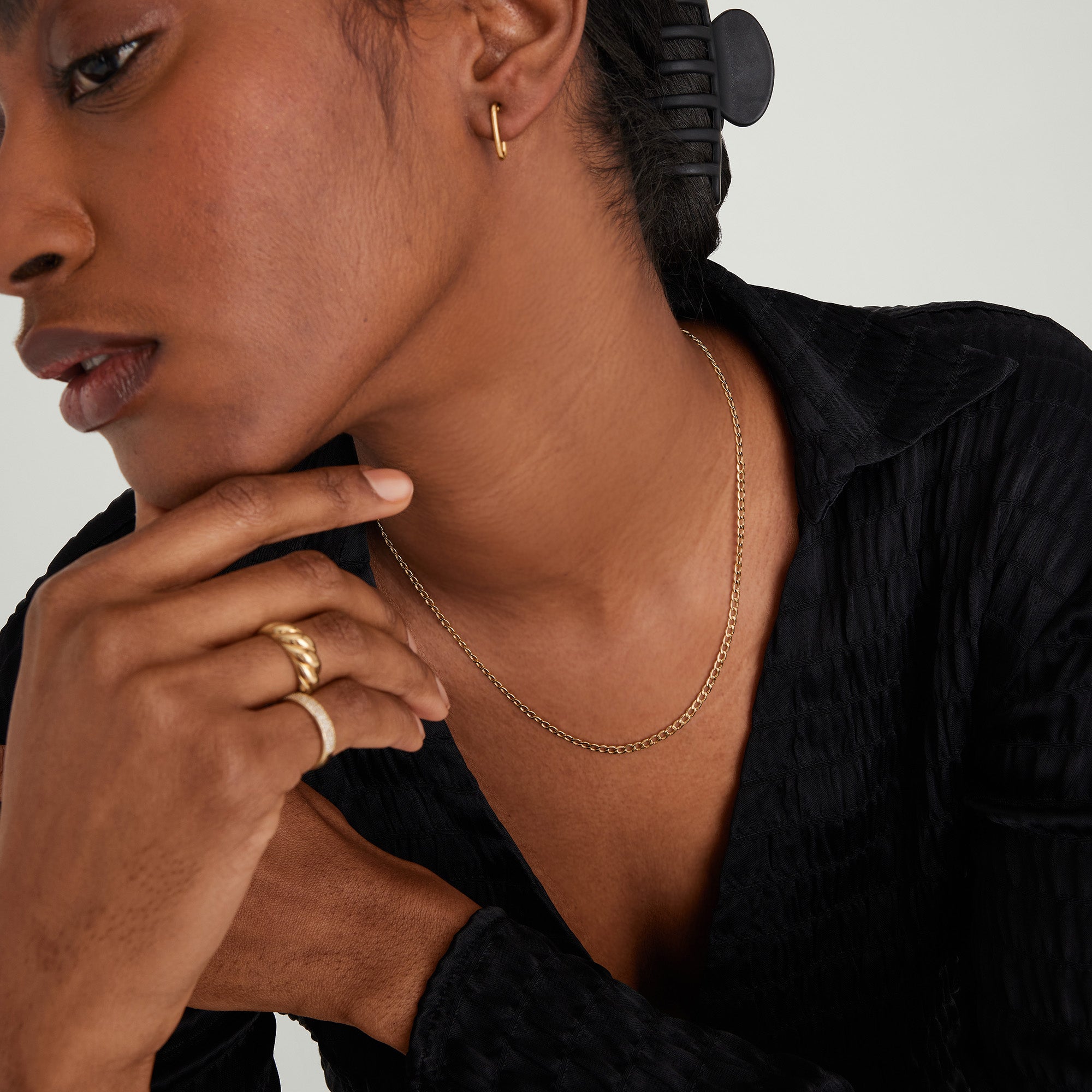 Explore Mejuri’s 14k Gold Flat Curb Chain Necklace, featuring a sleek flat curb chain design that adds a touch of elegance to your jewelry collection.