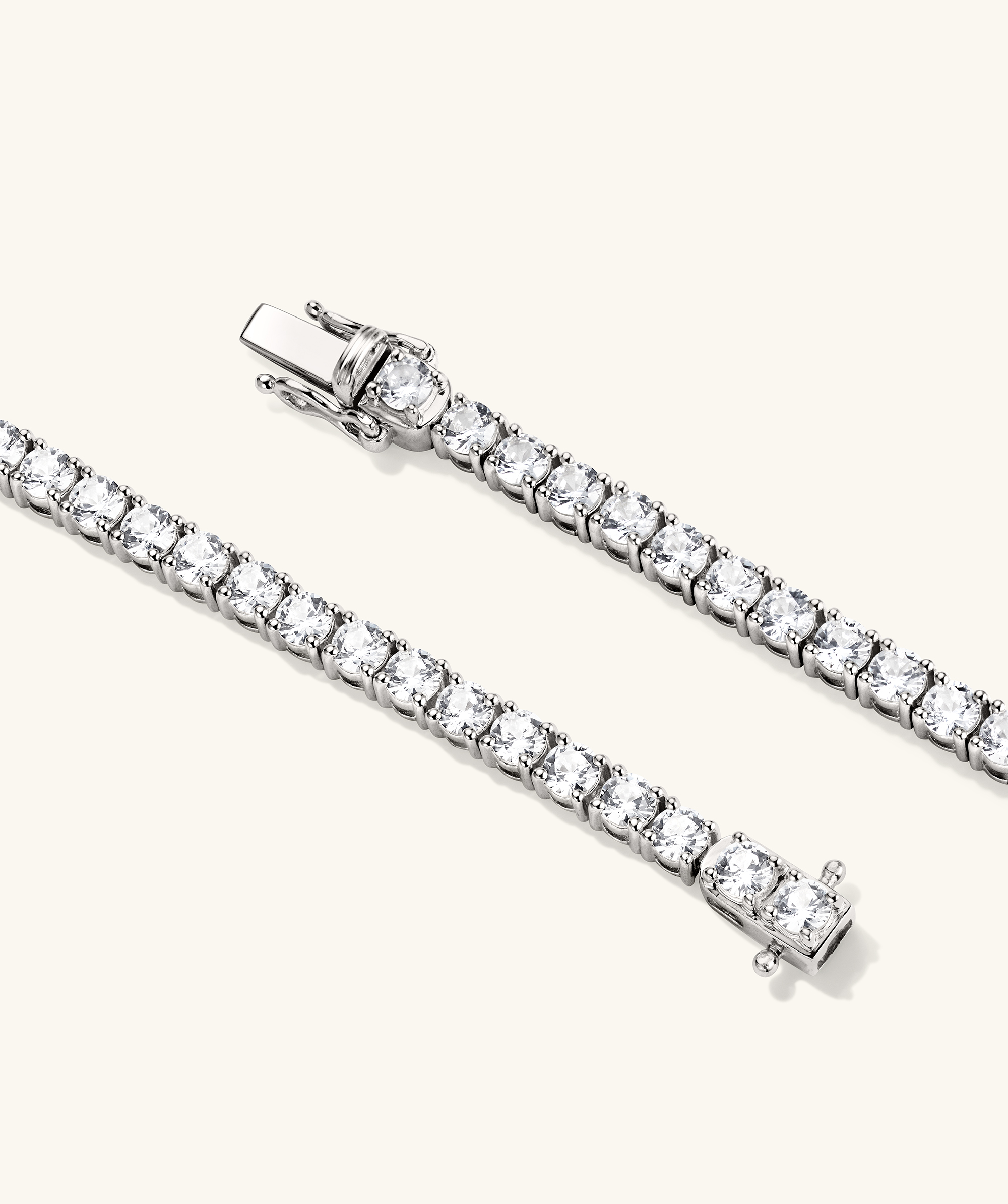Of course you play tennis. Prep your looks with lab grown sapphires. Mejuri’s Sterling Silver Handcrafted Lab Grown Sapphire Tennis Necklace features gemstones with the same chemical and physical properties as natural ones—and they sparkle just as nicely.