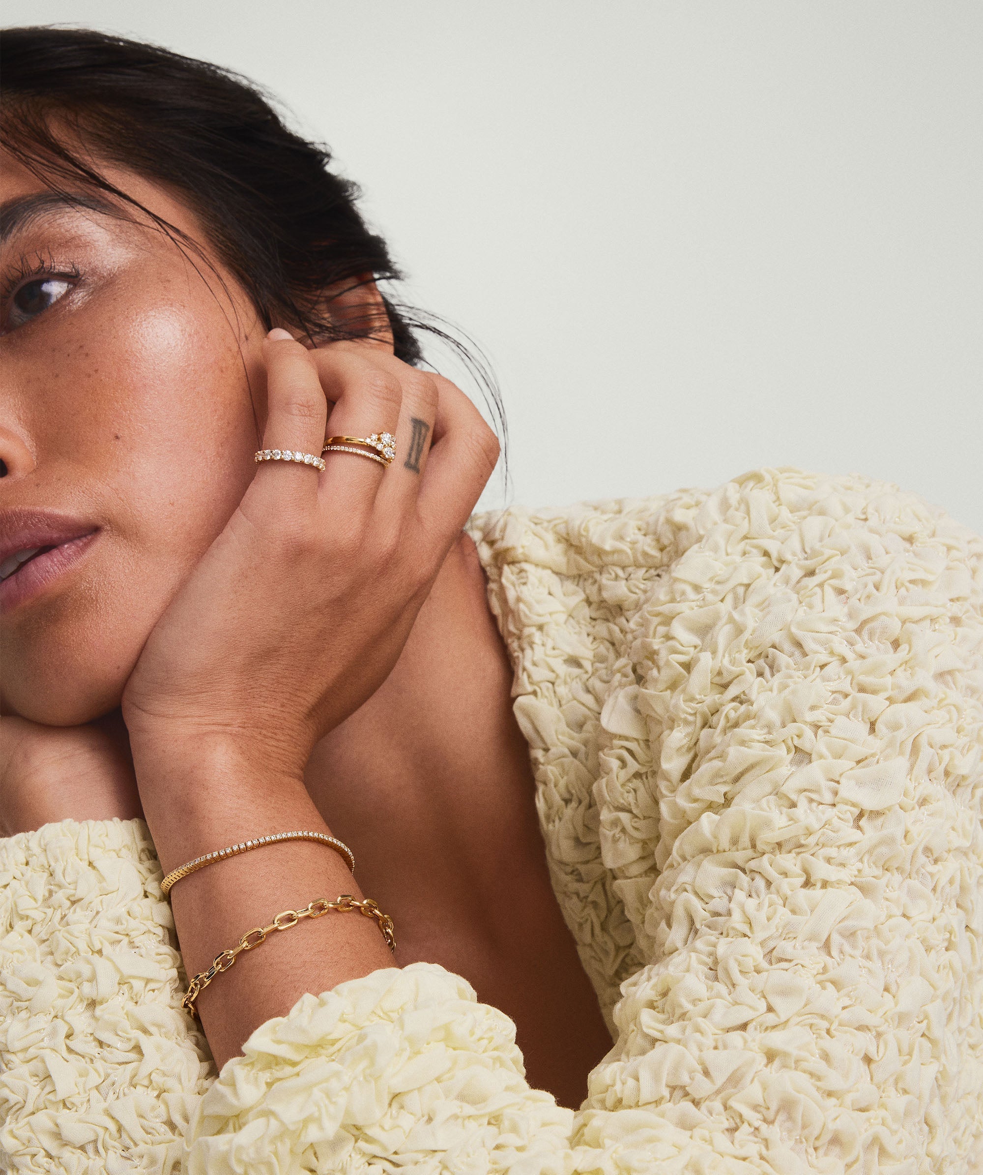 Our 14k gold pieces are made to last and perfect for everyday wear. Each piece is crafted from 94% recycled gold. 14k white gold pieces are finished with rhodium plating, giving them their signature color along with added shine and durability.