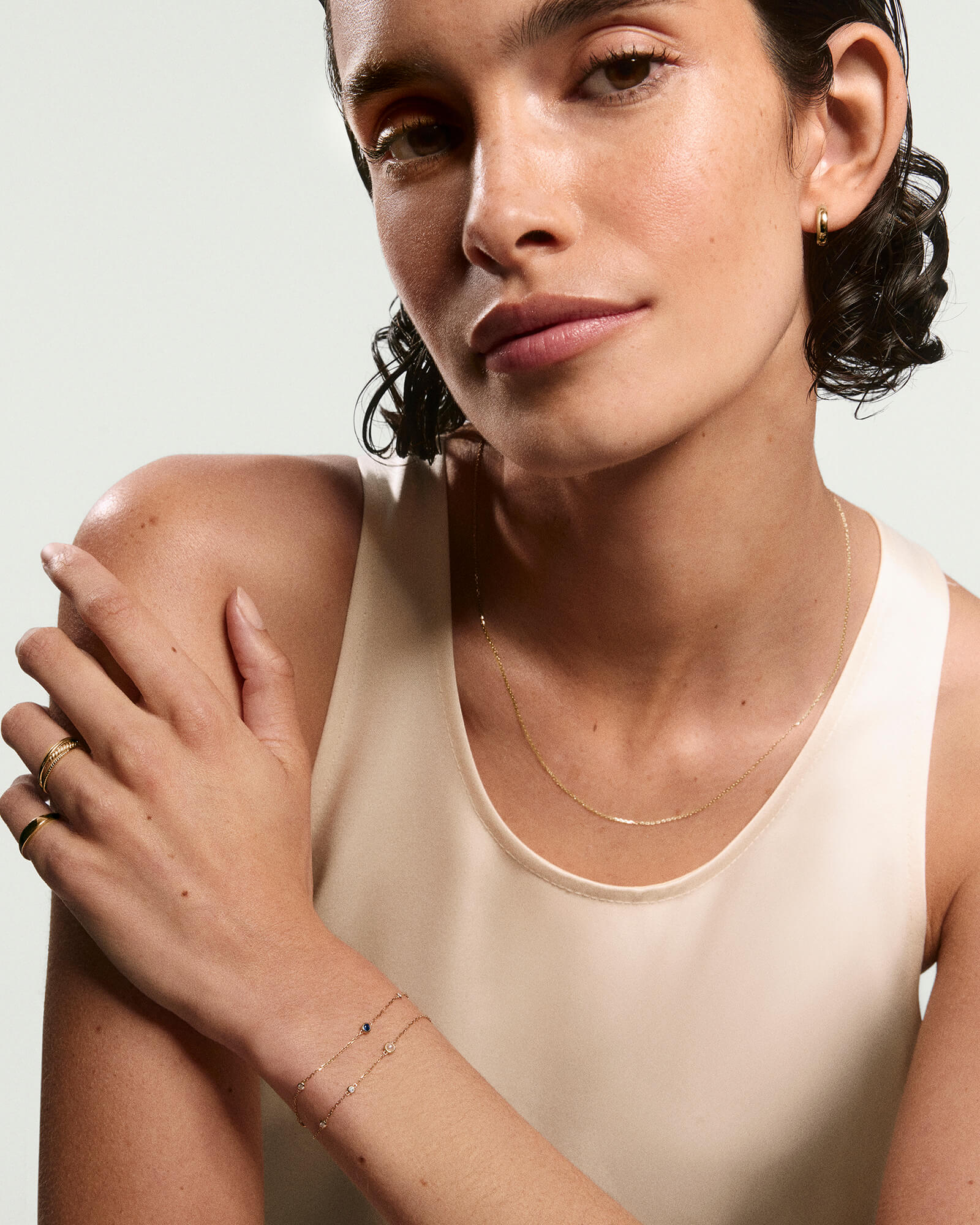 Diamonds are 10x better with a sprinkle of colorful gems. Stack to find out for yourself. Mejuri’s 14k Gold Handcrafted Multi Gemstone Station Bracelet combines diamonds and colorful gemstones, adding a vibrant touch to any jewelry collection.