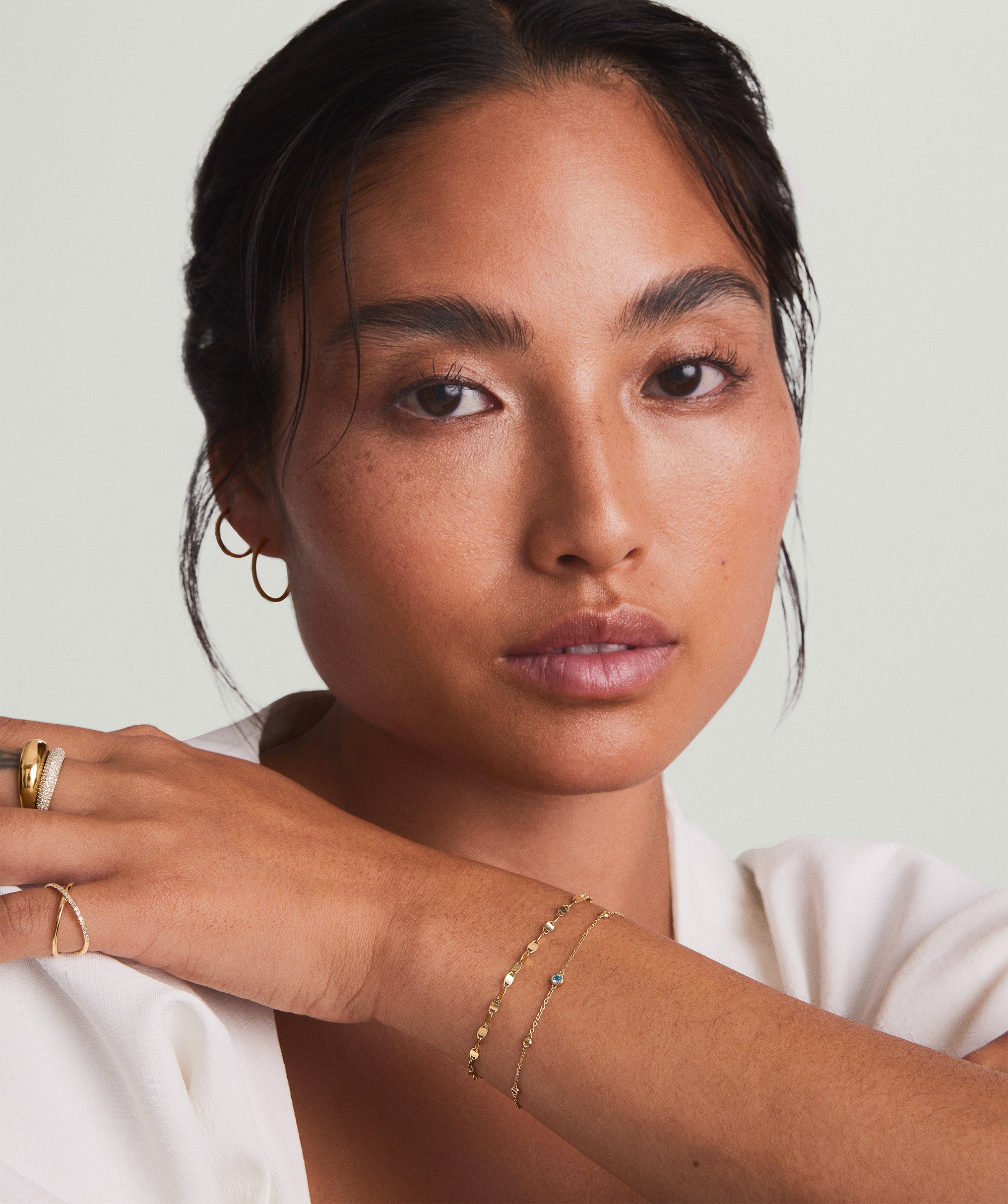 Our 14k gold pieces are made to last and perfect for everyday wear. Each piece is crafted from 94% recycled gold. 14k white gold pieces are finished with rhodium plating, giving them their signature color along with added shine and durability.