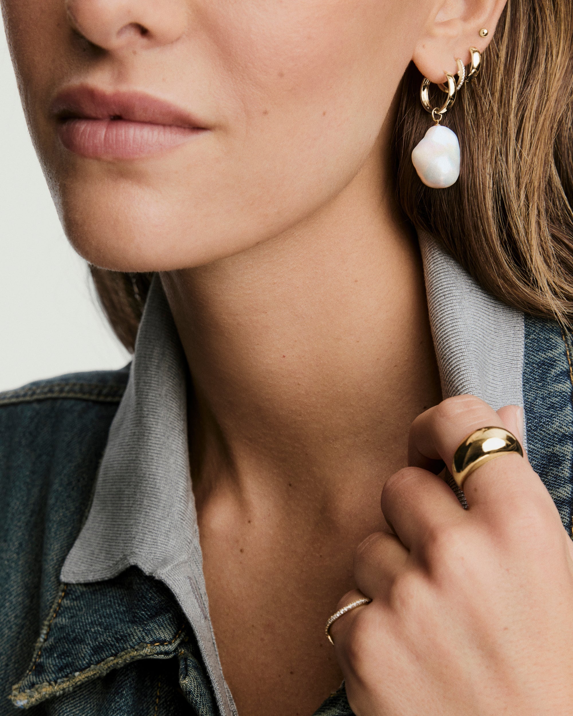 Looking for the sculptural look in an instant? You’ve found it in this statement baroque pearl charm, featuring an irregular, oversized shape—and it’s yours to match with your favorite hoops. We suggest combining with our Bold Small Hoops or Remy Gemstone Charm Hoops.