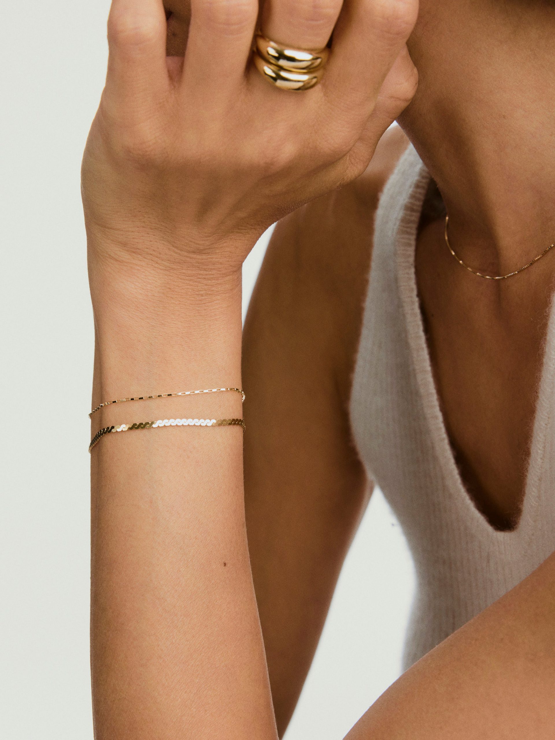 The Paper Chain bracelet is its own cause for celebration, featuring miniature gold links that bring shine to any wrist stack.