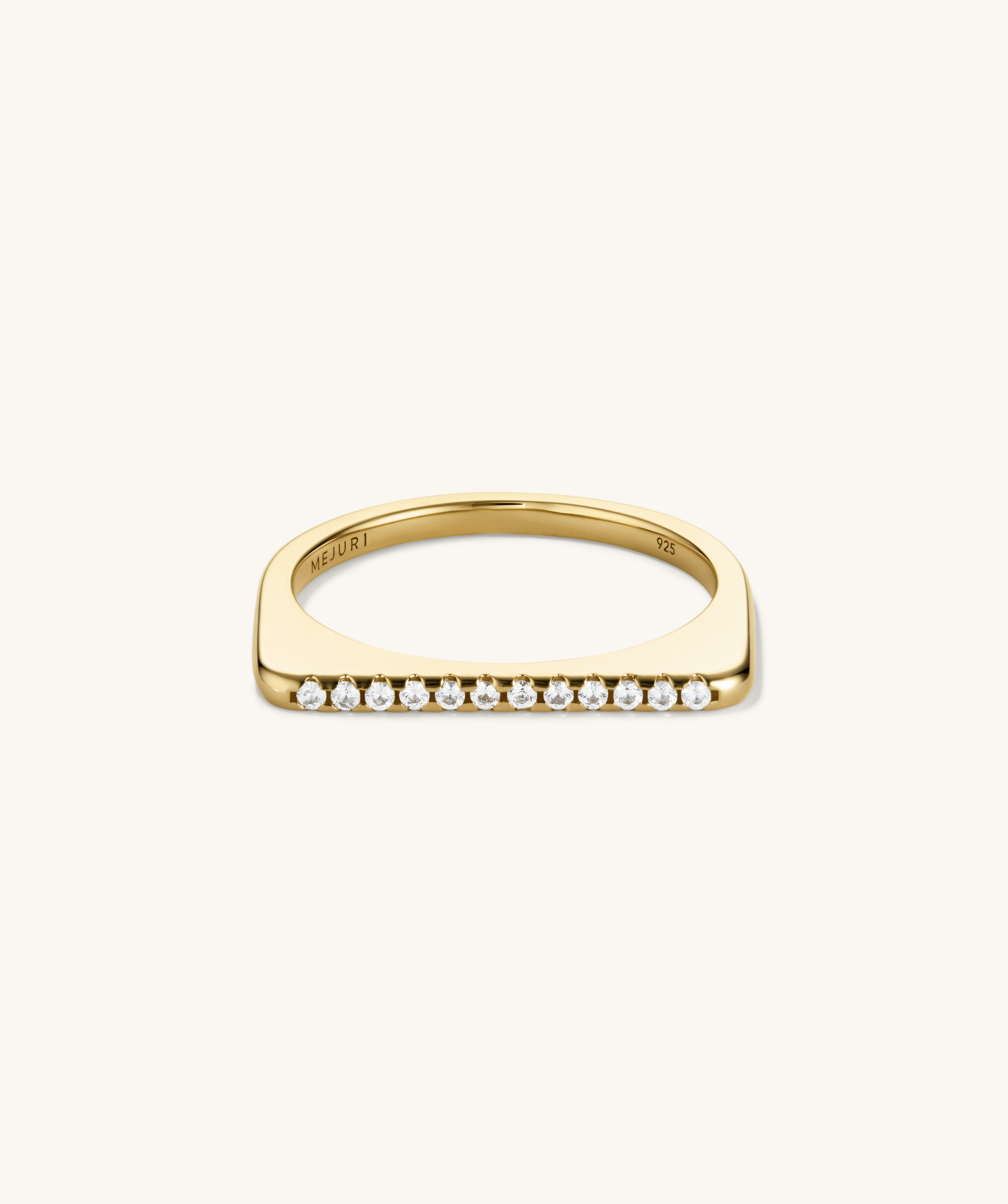 Stack smart with Mejuri’s Pavé Puzzle Stacking Ring in 18k gold vermeil featuring pavé-set lab-grown white sapphires. Elegant, structured shine for everyday styling.n