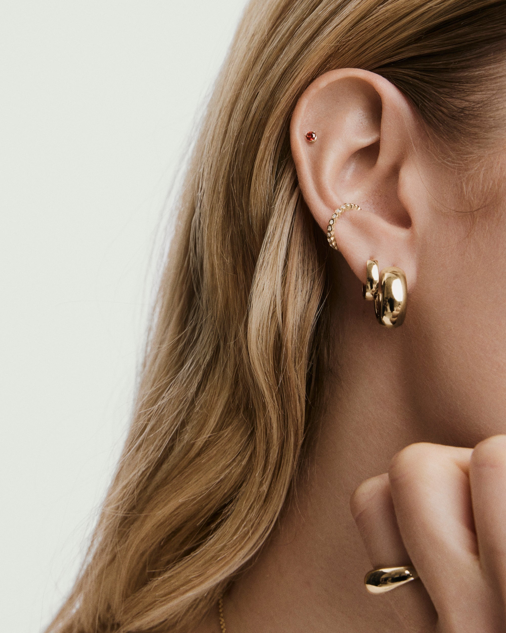 Our 14k gold pieces are made to last and perfect for everyday wear. Each piece is crafted from 94% recycled gold. 14k white gold pieces are finished with rhodium plating, giving them their signature color along with added shine and durability.