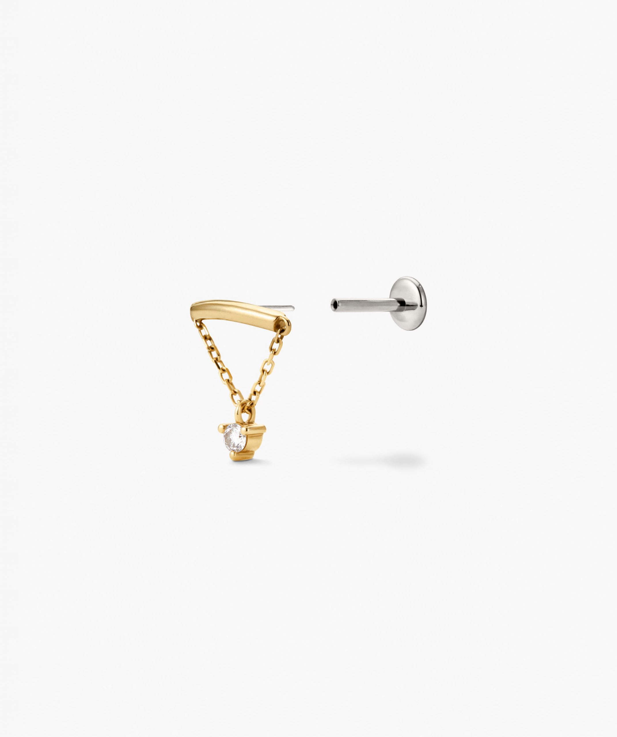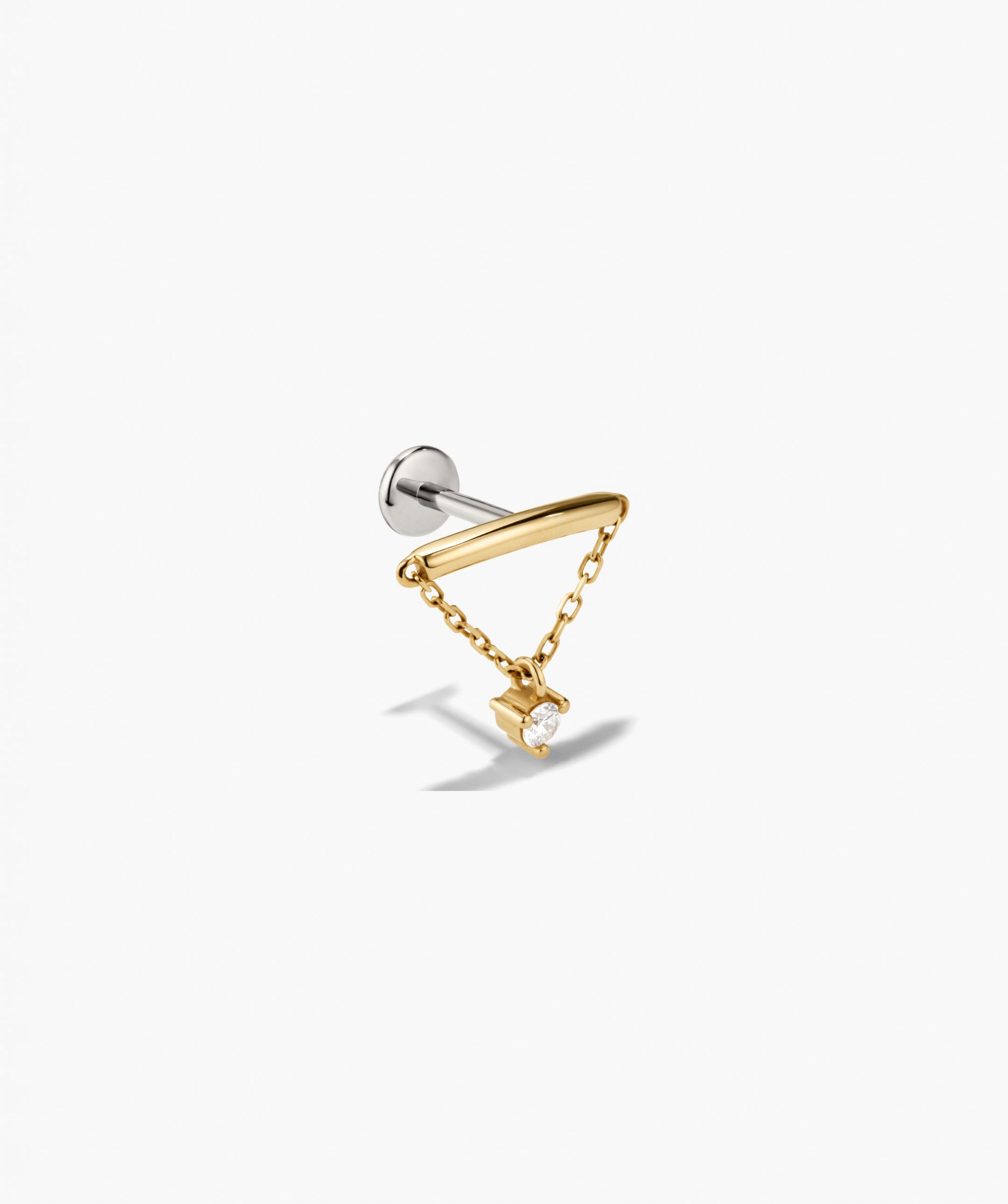 This helix stud keeps a low profile, at least until the light hits. Sleek bar, fine chain, floating diamond. It’s practically made for second glances.