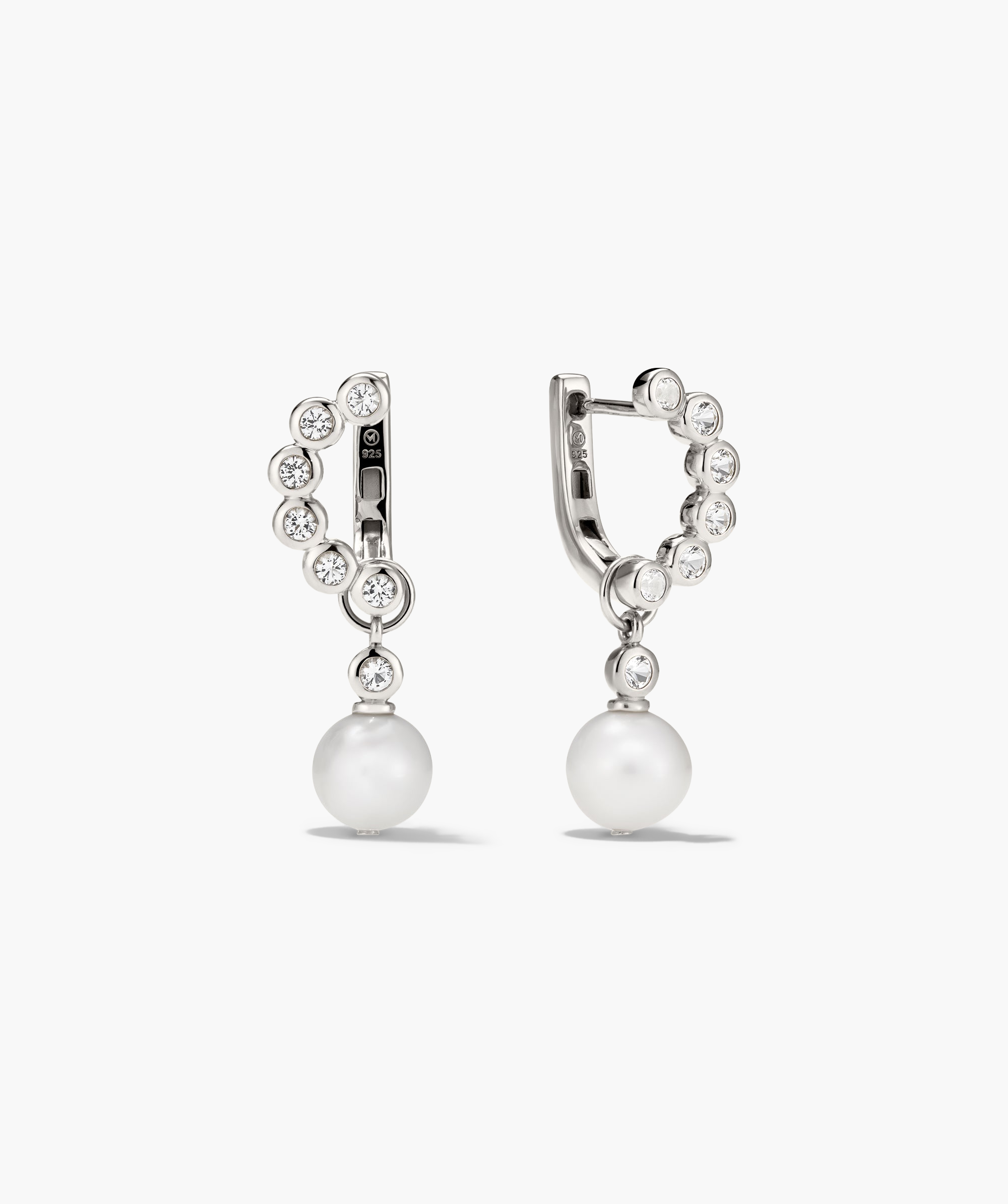 Hoops– Stone Size: 2.25 mm– Hoop Length: 15 mm– Hoop Width: 8 mmCharms– Stone Size: 2.25 mm– Pearl Size: 8-8.5mm– Length: 12.10 mm