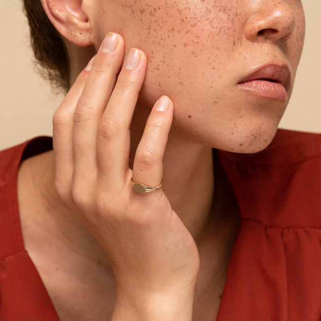 Our 14k gold pieces are made to last and perfect for everyday wear. Each piece is crafted from 94% recycled gold. 14k white gold pieces are finished with rhodium plating, giving them their signature color along with added shine and durability.