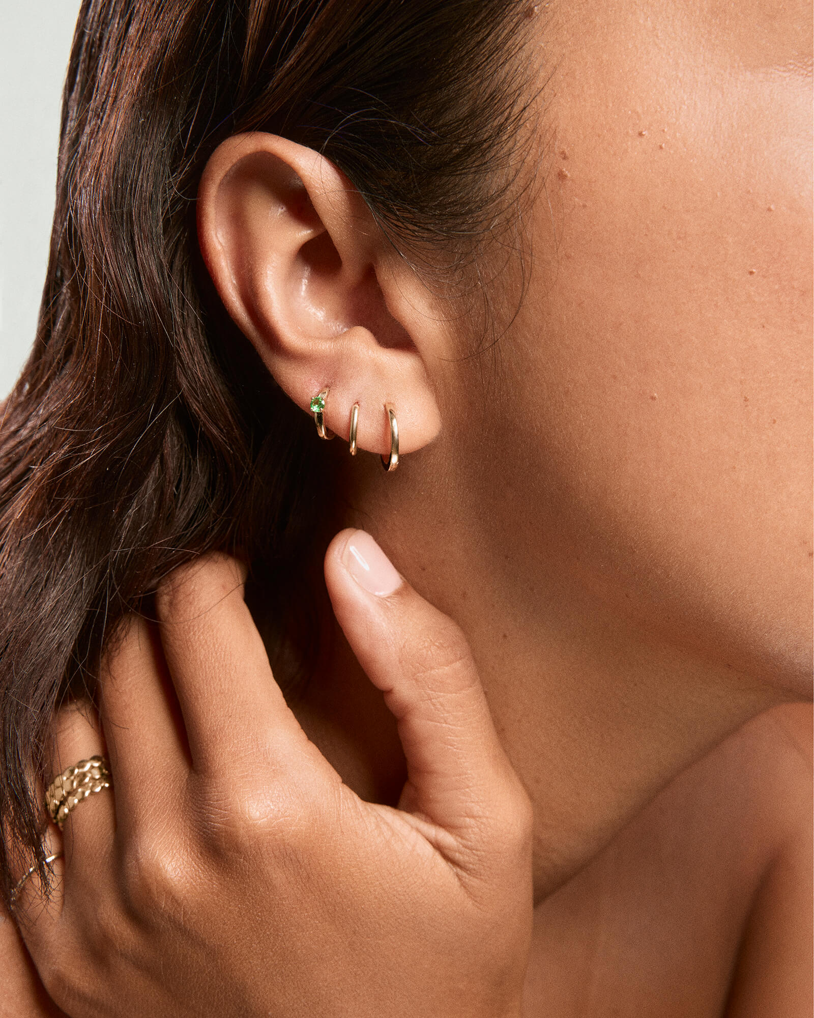 A colorful update to our classic single mini hoop. The hinge clasp makes it easy to wear and put on. This is our lightest hoop, perfect to wear every single day. Handcrafted in 14k solid gold featuring blue sapphire. Sold individually. Mejuri’s 14k Gold Single Colored Mini Hoop Earrings with Blue Sapphire add a touch of elegance and color to any jewelry collection.