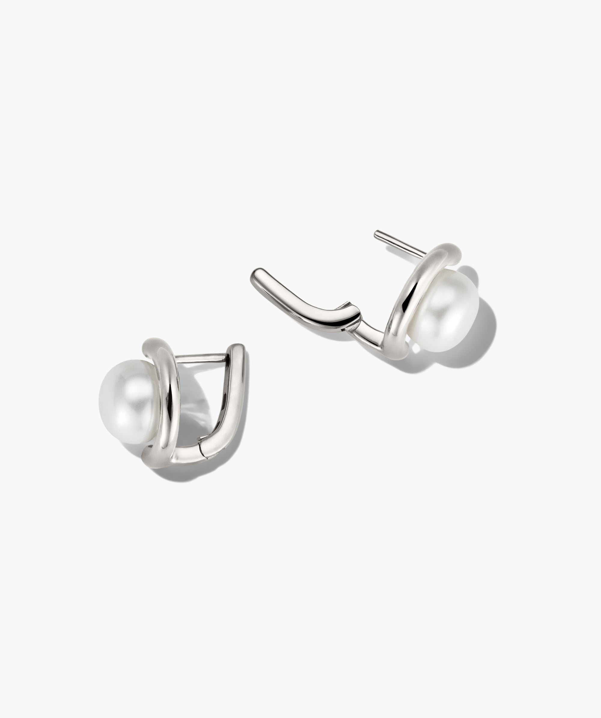 Something chic for every day. The Sloan Pearl Earrings are made with a button pearl set inside a half hoop, so you get the best of both worlds.