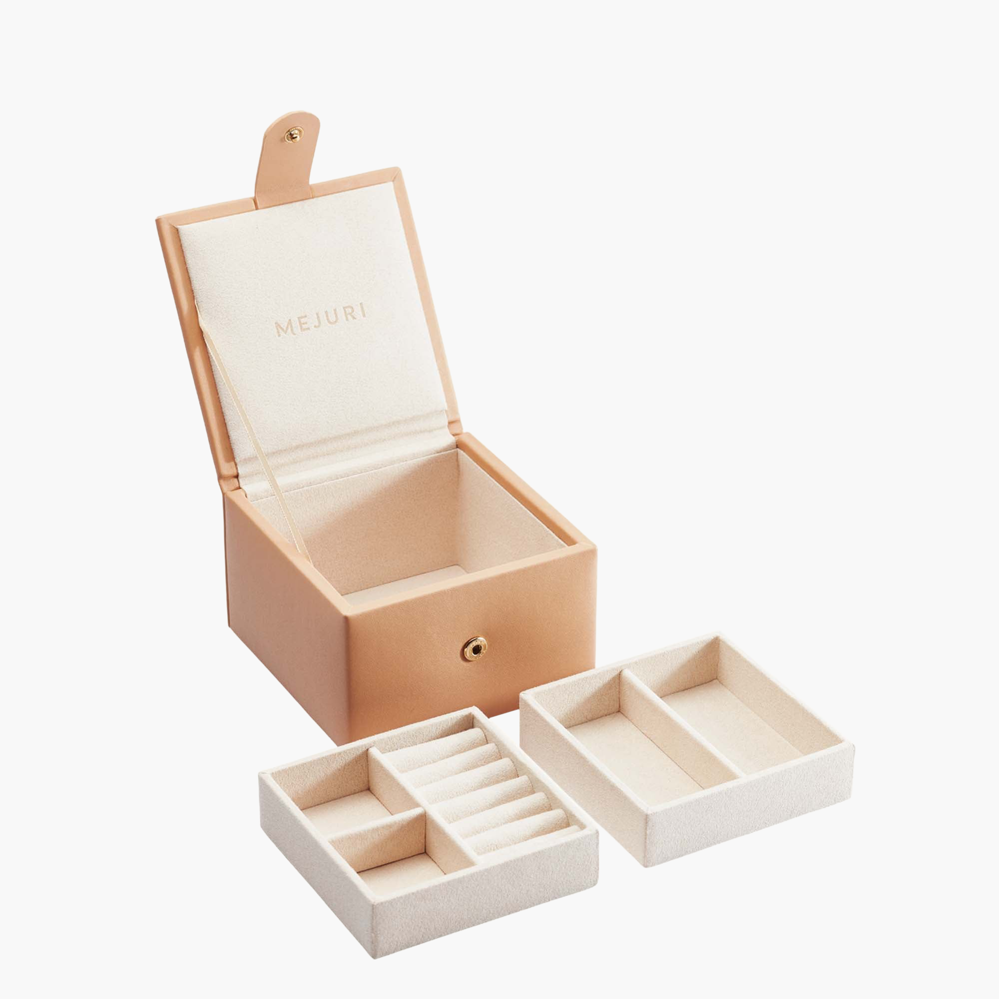 Wouldn’t it be nice if there was a conveniently compact box to tuck your fine faves into every day? Featuring two removable trays with specially designed compartments and a treated interior lining that prevents tarnishing. Plus, add a personal touch with monogrammed letters.